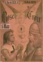 Le , le « Sâr » ouvre le premier Salon rosicrucien dans la galerie de Paul Durand-Ruel à Paris, en réaction au Salon des artistes français et à celui de la Société nationale des beaux-arts. Le succès est assuré par la popularité des romans de Peladan et par l'intense campagne de presse menée. Tout-Paris se presse lors des deux jours d'inauguration. On y croise Gustave Moreau et Pierre Puvis de Chavannes, Paul Verlaine, Stéphane Mallarmé et Émile Zola, officiels et ambassadeurs. L'impact dans la presse et la mémoire collective est considérable. On peut y voir, entre autres, des œuvres des peintres Fernand Khnopff, Ferdinand Hodler, Alexandre Séon, Henri Martin, Jean Delville, Alphonse Osbert, Armand Point, Jan Toorop, Edmond Aman-Jean, Eugène Grasset, Antoine Bourdelle, Félix Valloton, Charles Filiger, Albert Trachsel, Émile Bernard, Georges Rouault, Rogelio de Egusquiza, Carlos Schwabe (qui réalise l'affiche du Salon), Théo P. Wagner, des sculptures d'Alexandre Charpentier, Jean Dampt, Auguste de Niederhausern. Erik Satie, proche de Peladan à cette époque, compose pour les vernissages les Sonneries de la Rose+Croix. Des concerts — où l'on joue Richard Wagner, Benedictus, Palestrina — et des représentations théâtrales accompagnent l'événement.