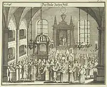 La liturgie de Roch Hachana est marquée par de nombreuses particularités et modifie également l'ordonnancement des psaumes lorsque la fête a lieu à\le chabbat (diverses coutumes existent à ce sujet)[58]. En outre, bien qu'elle célèbre une néoménie, on n'y lit pas le Hallel, eu égard à la solennité de la fête[59].