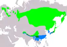 Cette espèce est en lente expansion vers l'ouest en migrant progressivement par la Finlande. Malgré cette expansion, cet oiseau reste très rare en Europe de l'Ouest. Quelques spécimens ont été observés en Amérique du Nord.
