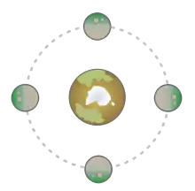 La rotation synchrone ne concerne pas seulement les satellites naturels des planètes mais aussi tout objet en orbite autour d'un autre. Elle peut concerner l’un des deux objets (généralement le moins massif[3]) ou les deux (comme Charon et Pluton).