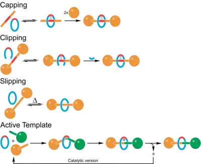Leigh et al ont récemment commencé à explorer une stratégie dans laquelle les ions servant à préorganiser les composants peuvent également jouer un rôle actif dans la formation de la dernière liaison covalente qui produit la structure imbriquée.