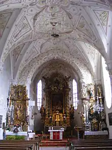 Le bâtiment est utilisé par la paroisse catholique du même nom et est entouré d'un cimetière paroissial où sont enterrés plusieurs personnalités connues, comme Leo Slezak ou Karl-Maria Herrligkoffer.
