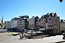De haut en bas, de gauche à droite : vue partielle de la ville et de la Seine depuis la côte Sainte-Catherine ; le palais de justice ; la place du Vieux-Marché ; la rue du Gros-Horloge, de nuit ; la cathédrale Notre-Dame ; le musée national de l'Éducation ; des voiliers lors de l'édition 2019 de l'Armada ; le pont Gustave-Flaubert. | |||||