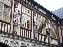 « Au reste, je rentre accablé de fatigue; je viens de me donner le plaisir de revoir Rouen, comme si j'y arrivais pour la première fois. Par des raisons que je dirai, Rouen est la plus belle ville de France pour les choses du Moyen Âge et l'architecture gothique. À l'époque où régnait la mode du gothique, Rouen était la capitale de souverains fort riches, gens d'esprit, et encore tout transportés de joie de l'immense bonheur de la conquête de l'Angleterre qu'ils venaient d'opérer comme par miracle. Rouen est l'Athènes du genre gothique […]. Ce qui est admirable à Rouen, c'est que les murs de toutes les maisons sont formés de grands morceaux de bois placés verticalement à un pied les uns des autres: l'intervalle est rempli par de la maçonnerie. Mais les morceaux de bois ne sont point recouverts par le crépi; de façon que, de tous les côtés l'œil aperçoit des angles aigus et des lignes verticales. »