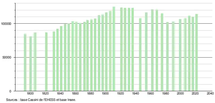 Comptant 114 083 habitants en 2021, elle est la trente-cinquième commune la plus peuplée de France et la deuxième de Normandie après Le Havre. En 2018, son agglomération compte 498 822 habitants[2]. Elle est la commune la plus densément peuplée du Grand-Ouest français avec 5 254 hab./km2. En 2012, avec 658 285 habitants[3], son aire urbaine est la première de la région normande, la douzième de France et la deuxième du Bassin parisien après celle de Paris[4]. Sa zone d'emploi, première du territoire régional, comprend 829 210 habitants en 2012[5]. Par conséquent, la ville est un centre économique national important.