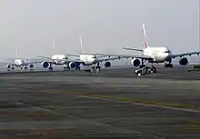 La phase de roulage est délicate sur le plan de la sécurité en raison des risques de projection de débris causés par les moteurs. Les avions respectent une distance de sécurité entre eux lorsqu'ils se suivent sur une voie de circulation.