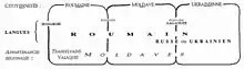 L'appellation « Moldaves » ne désigne pas en français une ethnie mais l'appartenance à un territoire : celui de l'ancienne principauté de Moldavie, comprenant aujourd'hui la région roumaine de Moldavie, la république de Moldavie et quelques régions limitrophes de l'Ukraine. En revanche, en russe, ukrainien, anglais et allemand, Moldave a le sens voulu par les autorités soviétiques, et, à leur suite, par les communistes, les russophones et les pro-russes de Moldavie : celui d'une « ethnie différente des Roumains » vivant uniquement dans les états ex-soviétiques c'est-à-dire n'incluant pas les Moldaves qui sont citoyens roumains ; de même, l'appellation « moldave » ne désigne pas en français une langue mais un parler régional roumain usité dans la région historique de Moldavie, tandis qu'en en russe, ukrainien, anglais et allemand ce terme désigne, conformément à la définion soviétique, une langue romane différente du roumain et propre aux états ex-soviétiques[41],[42].