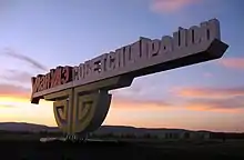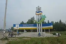 Stèle de bienvenue en Bouriatie avec le panneau M55.