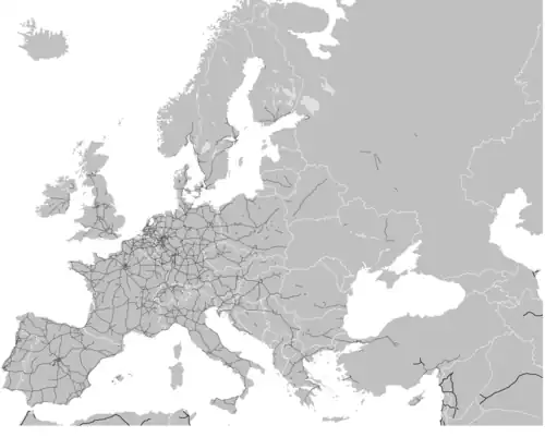 Ainsi, en 2004, pour l'UE25, pour 73 000 km de réseau commun, il existe 17 800 km spécifique au réseau RTE-T, et 14 400 km au réseau E[2].