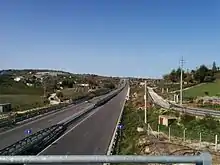 Le doublement du premier lot (du km 9+800 au km 44+400), entre la jonction avec la Strada provinciale 80 (Agrigente) et la contrade de Grottarossa (Canicattì) est approuvée par le CIPE avec la résolution numéro 156 du 2 décembre 2005, attribuant un peu moins de 595 millions d'euros. Le projet final prévoyait la construction de vingt viaducs, trois tunnels artificiels et huit jonctions, dont deux nouvellement construites et six adaptées à celles existantes[17]. Le nouveau tracé suit le tracé préexistant sur la majeure partie de son itinéraire, à quelques exceptions près ; parmi ceux-ci se trouve la variante entre les embranchements « Aquilata » (Castrofilippo) et « Vecchia Dama » (Canicattì), qui comprend le nouveau viaduc Serra Cazzola (it), construit au nord de l'ancien tracé.