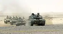 Des FV4034 Challenger 2 du RDG en exercice à Oman en 2001.