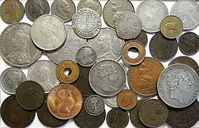 - Pièces de monnaie du Royaume-Uni : pièces de monnaie frappées depuis la décimalisation de la livre sterling.