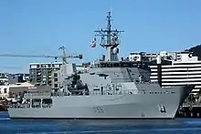 - 1 navire ravitailleur : HMNZS Aotearoa (A12) (en) remplaçant le 29 juillet 2020 le HMNZS Endeavour (A11) retiré en décembre 2017[14] Déplaçant 26 000 tonnes, il est le navire amiral de cette marine.