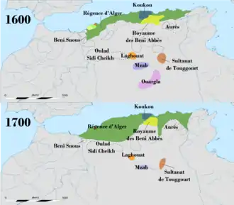 Le royaume de Koukou, siège de la confédération tribale des zouaouas, prend part à des expéditions de la régence d'Alger — contre la Kalaa (1559), à Oran (1562), Malte (1565), Tunis (1569) ou Fez (1576) — et fourni également des mercenaires dont les services sont recherchés à Alger, mais également à l'étranger, à Tunis ou par les Saadiens au Maroc comme lors de la Bataille des Trois Rois (1578).