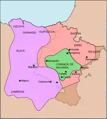 Avec Sanche III le Grand (1004-1035) le royaume de Pampelune atteint sa plus grande extension territoriale, en comprenant presque tout le tiers nord péninsulaire. Dans la réorganisation du royaume, on suppose qu'il a créé la vicomté du Labourd[5], entre 1021 et 1023, avec résidence du vicomte à Bayonne et celle du Baztan vers 1025.