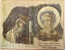 Le roi Boson et saint Étienne, fragment des fresques de l'abbaye de Charlieu, XIIe siècle.