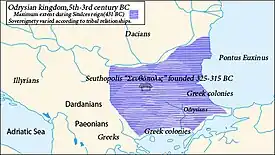 Le royaume des Odryses est issu de l'union de plusieurs peuples thraces entre le Ve et IIIe siècles av. J.-C. Il s'étendait sur le sud et l'est de l'actuelle Bulgarie, jusque sur les côtes de l'actuelle Roumanie, sur le nord-est de la Grèce et la partie européenne de l'actuelle Turquie. Le roi Seuthès III en établit la capitale à Seuthopolis (aujourd'hui Kazanlak, en Bulgarie).