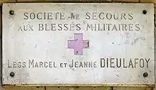 - No 12 : hôtel Dieulafoy construit par Joseph Vaudremer en 1895 pour son ami l’archéologue Marcel Dieulafoy[6]. La Revue illustrée en donne, le , la description suivante : « Après avoir gravi un escalier de bois sculpté, on arrive au superbe salon du premier étage dont le principal ornement est une cheminée gothique monumentale. Et partout ce ne sont que meubles rares, vases précieux et bibelots étranges qui rappellent les civilisations passées ; le cabinet de travail de Mme Dieulafoy est particulièrement élégant avec ses tentures de velours bleu sur lesquelles se détachent les riches reliures qui ornent sa bibliothèque. C’est dans cet hôtel délicieusement orné que, chaque dimanche, se donne rendez-vous tout ce que Paris compte de célébrités mondaines, artistiques et scientifiques »[7]. En 1920, à la mort de Marcel Dieulafoy, l'hôtel est légué à la Société de secours aux blessés militaires (SSBM), future Croix-Rouge française. Il est actuellement le siège de la Délégation territoriale de Paris de la Croix-Rouge française.