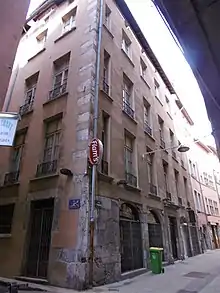 - Au niveau du No 9 de la rue, une plaque indique la présence d'un hôtel du début du XVIe siècle avec comme indication : « Les parties les plus anciennes de l'ensemble conservent la morphologie d'un riche hôtel de 1500 avec deux corps séparés par une cour ». Cet ensemble est adossé aux vestiges de l'ancienne enceinte médiévale et donc romaine de la ville. Cet immeuble est classé au titres des monuments historiques par arrêté du 23 juin 1987[8].