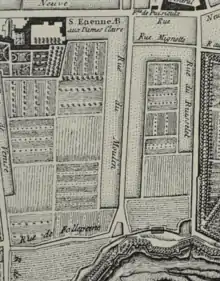 Ancienne rue de la Chasserie. Elle fut prolongée, jusqu’à la rue des Moulins, par l’acquisition du lavoir dit du Ruisselet en 1837. Réunie en 1841 à la rue de la Sécherie, ou de la Chasserie, elle commençait autrefois rue du Jard et prit le nom de rue Clovis pour la portion entre les rues du Jard et de Venise.