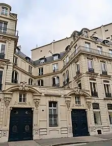 - No 5 : hôtel de Mme Ridgway puis résidence des ambassadeurs des États-Unis[25] Henry White (1907-1909), Robert Bacon (1909-1912) et Myron Timothy Herrick (1912-1914). Pendant la Première Guerre mondiale, il abrite le siège de l'American Relief Clearing House, fondé par ce dernier afin de coordonner l'action d'associations caritatives américaines, qui récolteront plusieurs millions jusque 1917, année de l'entrée en guerre des États-Unis[26]. Actuellement un bâtiment récent, qui abrite en particulier le siège de la société Financière Lov, propriété de Stéphane Courbit[27].