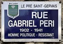 Elle porte le nom du journaliste Gabriel Péri (1902-1941), arrêté comme résistant et fusillé comme otage.