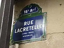 La rue Lacretelle est une voie située dans le quartier Saint-Lambert du 15e arrondissement de Paris, en France.