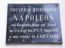 Le , Napoléon Ier, lors de son retour de l'île d'Elbe, s'est arrêté à l'hôtel des Trois-Dauphins situé à l'angle de la rue Montorge et de la rue de Bressieux. Une plaque commémorative a été scellée sur la façade de cet hôtel devenu, entretemps, l'hôtel Napoléon.