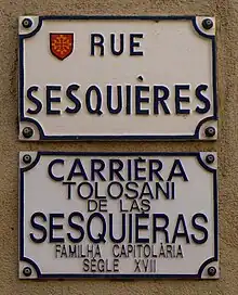 | Nom occitan | Carrièra Tolosani de las Sesquièras |