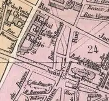 La rue Taranne sur le plan de Turgot vers 1734. | |||