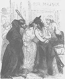 - Dessin extrait de Les Rues de Paris ancien et moderne. 358-1843, origine et histoire. Monuments, costumes, mœurs, chroniques et traditions, par Louis Lurine, illustré par Gavarni, Daumier, Célestin Nanteuil, G. Kugelmann éditeur, Paris 1843.