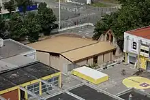 L'édifice se compose de deux volumes rectangulaires : le porche d'entrée et la nef. L'ensemble est couvert par un toit de plaques d'acier prélaquées. Le clocher-mur en brique et son arc en mitre est une référence à l'architecture gothique méridionale et aux clochers toulousains[9].
