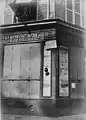 La rue de Liège en 1914, après le changement de nom. On lit [BER]LIN sur la plaque en partie cachée par un volet ; et la nouvelle appellation figure sur un panneau de fortune.