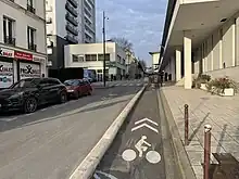 Rue de l'Embarcadère vue du quai des Carrières (lycée Robert-Schumann à droite) | |