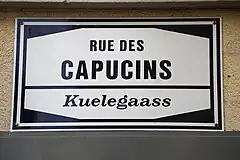 Plusieurs villes ou communes possèdent une rue des Capucins. L'odonyme fait référence à la présence - actuelle ou ancienne - d'un couvent de pères Capucins, nom populaire de la branche apostolique des Franciscains.
