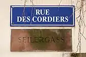 Des plaques de rues bilingues, à la fois en français et en alsacien, ont été mises en place par la municipalité à partir de 1995[3]. C'est le cas de la Seilergass.