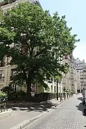 Hôtel particulier au croisement avec la rue de Boulainvilliers.