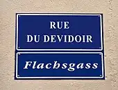 Des plaques de rues bilingues, à la fois en français et en alsacien, sont mises en place par la municipalité à partir de 1995[3]. C'est le cas de la Flachsgass (« rue du Lin[1] »).