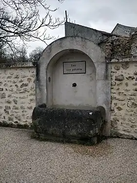 - Fontaine du bas de la Vallée, dite La Coulette[4]. Les eaux de cette fontaine sont captées en souterrain au lieudit La Fontaine d'Orme, puis traverse par une canalisation le parc des Étangs[5]. Elle fut construite avant 1641[6] par Claude Delanoue, marchand orfèvre à Paris[7]. En 1835, l'acte de vente du domaine des Étangs appartenant à Antoine Lesage, maire de la ville, et acquis par Marie de Mothes de Blanche, mentionne l'existence dans la rue, d'un bassin alimenté par la fontaine et destiné à l'usage et aux commodités de la population[8].