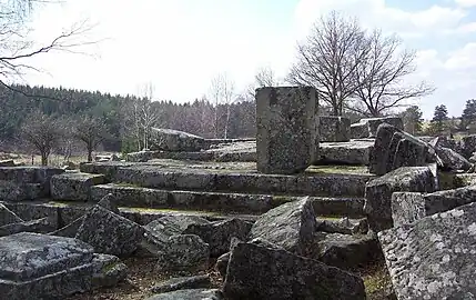 La disposition actuelle des blocs n'est pas uniquement due à l'effet du temps. Les blocs ont été dissociés par les barbares au IIIe siècle apr. J.-C. lorsqu'ils se sont rendus sur les lieux pour piller les agrafes de métal. Ces dernières étaient vendues cher pour être fondues et transformées en armes.