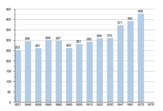 - Sources : INS, Rem. : 1831 jusqu'en 1970 = recensements, 1976 = nombre d'habitants au 31 décembre[3].