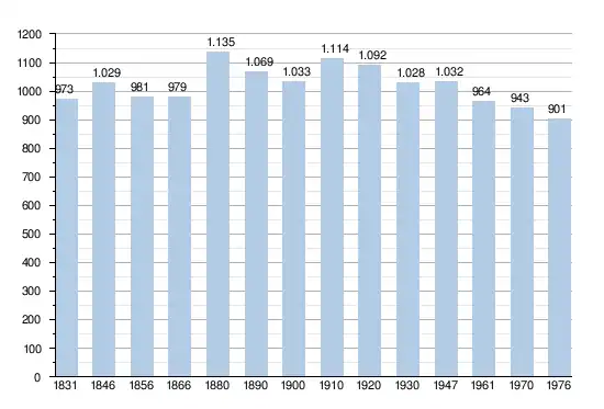 - Sources : INS, Rem. : 1831 jusqu'en 1970 = recensements, 1976 = nombre d'habitants au 31 décembre[4].