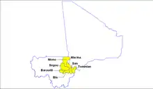 | Cercles[1] | Barouéli, Bla, Macina, Niono, San, Ségou et Tominian |