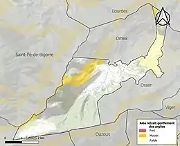 Le retrait-gonflement des sols argileux est susceptible d'engendrer des dommages importants aux bâtiments en cas d’alternance de périodes de sécheresse et de pluie. 10,2 % de la superficie communale est en aléa moyen ou fort (44,5 % au niveau départemental et 48,5 % au niveau national). Sur les 124 bâtiments dénombrés sur la commune en 2019, 0 sont en aléa moyen ou fort, soit 0 %, à comparer aux 75 % au niveau départemental et 54 % au niveau national. Une cartographie de l'exposition du territoire national au retrait gonflement des sols argileux est disponible sur le site du BRGM[30],[Carte 3].