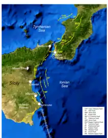 La partie sud-ouest de la Calabre ainsi que la partie est de la Sicile sont des zones actives d'extension de la croûte terrestre au sein de la zone de rift siculo-calabraise. Cette longue zone de 350 kilomètres s'est développée avec la chaîne des Apennins au Pléistocène.