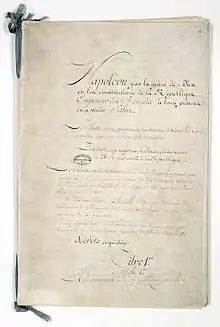 Sous le Consulat, les Premier et Second Empire français, c'est un acte voté par le Sénat et ayant la valeur supérieure aux lois. Les sénatus-consultes organiques modifient la Constitution et les sénatus-consultes simples en règlent l'exercice - ils peuvent aussi modifier des dispositions législatives.