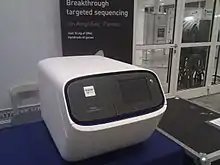 | Séquençage d'une seule molécule en temps réel (Pacific Biosciences) | 10,000 pb à 15,000 pb en moyenne (14,000 pb N50); longueur de lecture maximale >40,000 bases[12],[13] | 87%[14] | 50,000 par cellule, ou 500–1000 megabases[15],[16] | 30 minutes à 4 heures[17] | $0.13–$0.60 | lectures longues. Rapide. Détecte 4mC, 5mC, 6mA[18] | débit modéré, l'équipement peut être très coûteux |