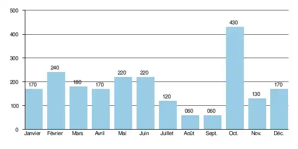 La période d'observation étant très faible, d'environ 2 ans - 26 mois exactement - les débits sont indicatifs : le module est de 0,18 m3/s[6]