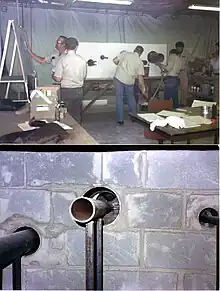 Pour assurer le confinement de la radioactivité, un système simple et efficace fut imaginé dès la conception, consistant à interposer entre les produits radioactifs et l'environnement une série de trois barrières physiques résistantes contre les radiations, qui visent à contenir la radioactivité en toute circonstance[15].