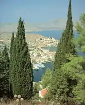 - Le « château des Chevaliers » construit par les Hospitaliers sur les hauteurs de la ville de Symi à la place d'un fort byzantin.